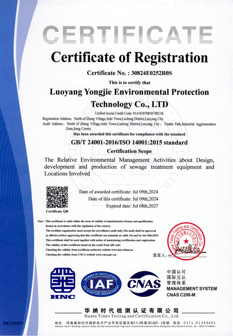自從質量、環境及職業健康安全管理體系在公司運行以來,公司上下各部門高度重視,從生產、銷售、辦公、采購、環境、健康等各個方面,嚴格按照管理體系的要求來執行,公司各項管理工作更加合理、高 效。此次新一認證周期審核的順利通過,是對公司多年來堅持管理體系運行工作的認可,我們將再接再厲,不斷改進,在今后的公司運營中,憑借著質量、環境及職業健康安全管理體系,把永潔環保推向更高質量的發展。
